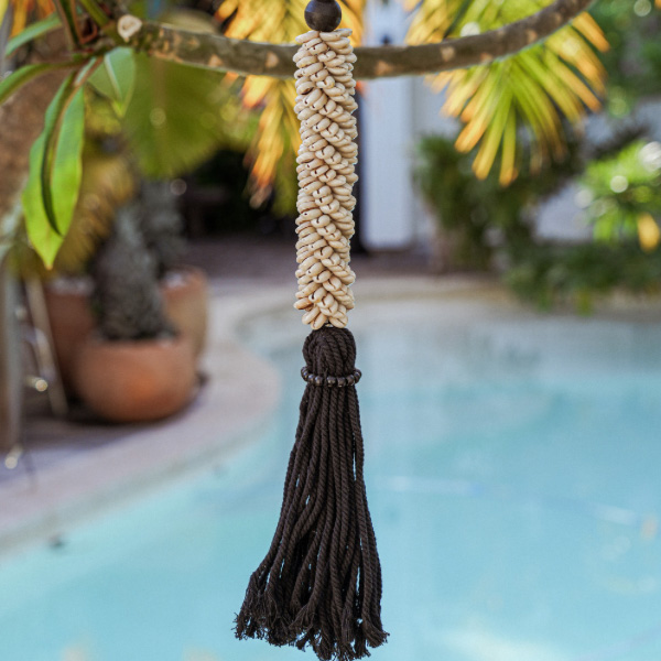 Découvrez notre embrase en coquillage avec un élégant pompon, minutieusement confectionnée à la main en Indonésie. Cette pièce artisanale apportera une touche exotique et raffinée à vos rideaux. Faites de chaque moment à la maison un voyage vers des rivages lointains avec cette création authentique.