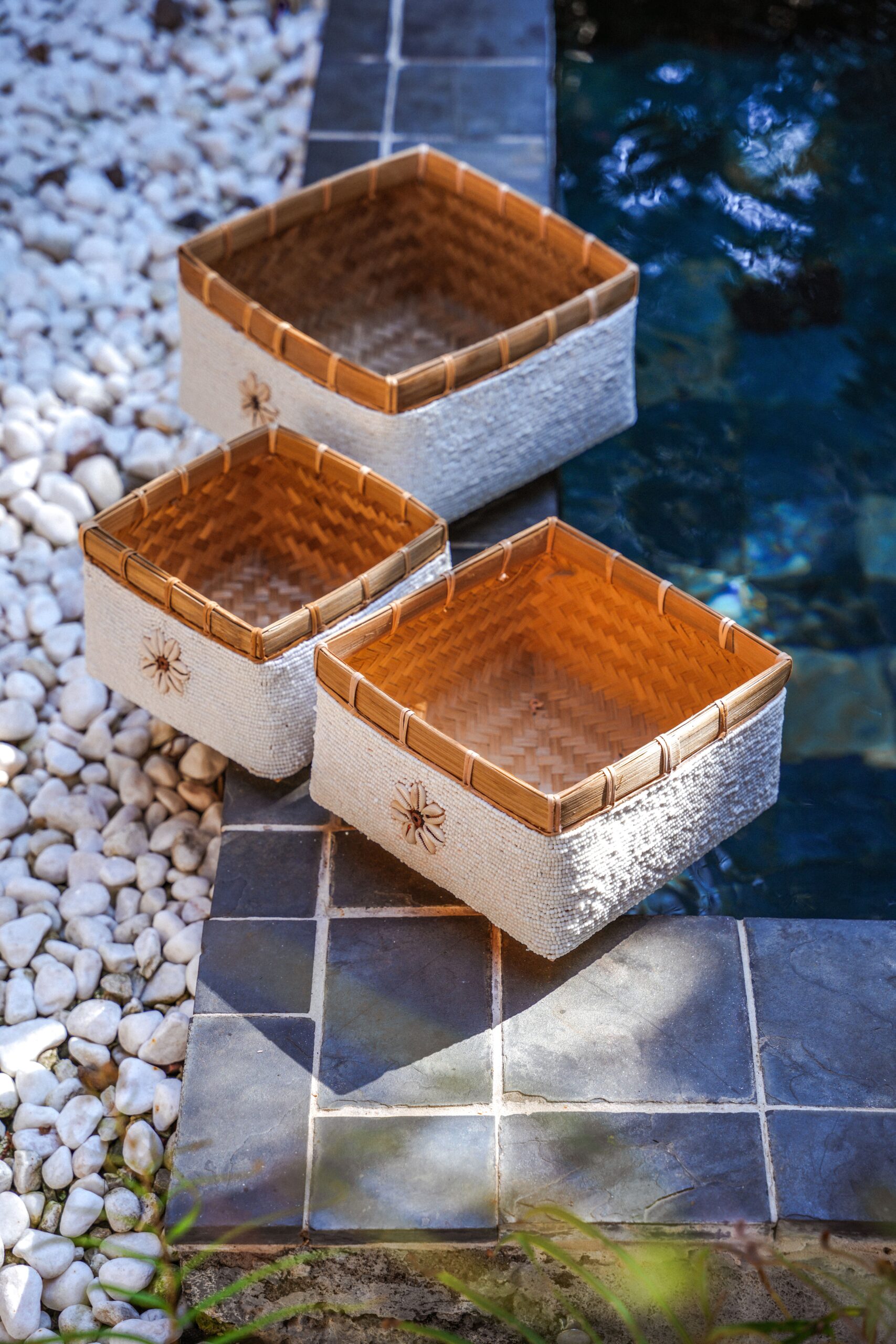 Découvrez nos paniers artisanaux en perles et coquillages, confectionnés à la main par des artisans balinais passionnés. Déclinés dans de délicates nuances de blanc et écru, ils incarnent la douceur et l’élégance naturelle de l’artisanat balinais. Le travail minutieux des perles et des coquillages confère à chaque panier une texture raffinée et un caractère unique. À la fois pratiques et décoratifs, ces paniers s’intègrent harmonieusement à tous les intérieurs, apportant une touche bohème et authentique.